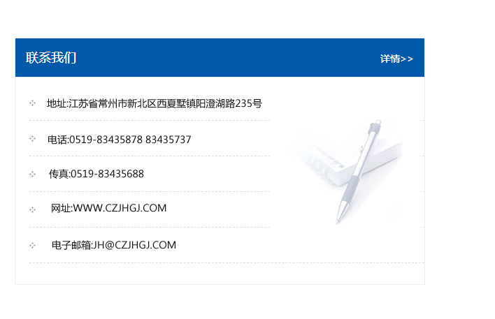 傳真:0519-83435688    郵編:213135    網址:WWW.czjhgj_com.xshycq.com    電子郵箱:JH@czjhgj_com.xshycq.com